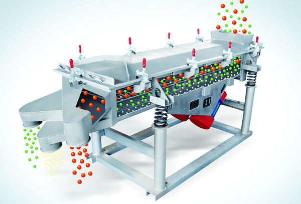 直線振動篩利用振動電機(jī)激振作為振動源,使物料在篩網(wǎng)上被拋起,同時(shí)向前作直線運(yùn)動,物料從給料機(jī)均勻地進(jìn)入篩分機(jī)的進(jìn)料口,通過多層篩網(wǎng)產(chǎn)生數(shù)種規(guī)格的篩上物、篩下物、分別從各自的出口排出。具有耗能低、產(chǎn)量高、結(jié)構(gòu)簡單、易維修、全封閉結(jié)構(gòu),無粉塵溢散,自動排料,更適合于流水線作業(yè)。