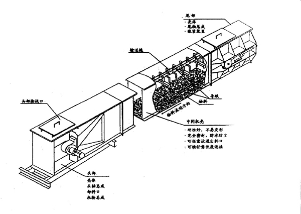 FU型鏈?zhǔn)捷斔蜋C(jī),是引進(jìn)國(guó)外先進(jìn)技術(shù),并進(jìn)行了獨(dú)創(chuàng)性的改進(jìn)設(shè)計(jì)后制造出來(lái)的一種用于水平(或傾斜≤15°)輸送粉狀、粒狀物料的機(jī)械新產(chǎn)品,其使用性能優(yōu)于螺旋輸送機(jī),埋刮板輸送機(jī)和其它輸送設(shè)備,廣泛用于建材、建筑、化工、礦山、機(jī)械、冶煉、糧飼加工等行業(yè),是一種理想的新型輸送設(shè)備。